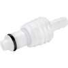 Quick disconnect fitting features a 1/4 inch barb on one side, and a female quick disconnect fitting on the other side. Integral shutoff seals the valve when not connected to...
